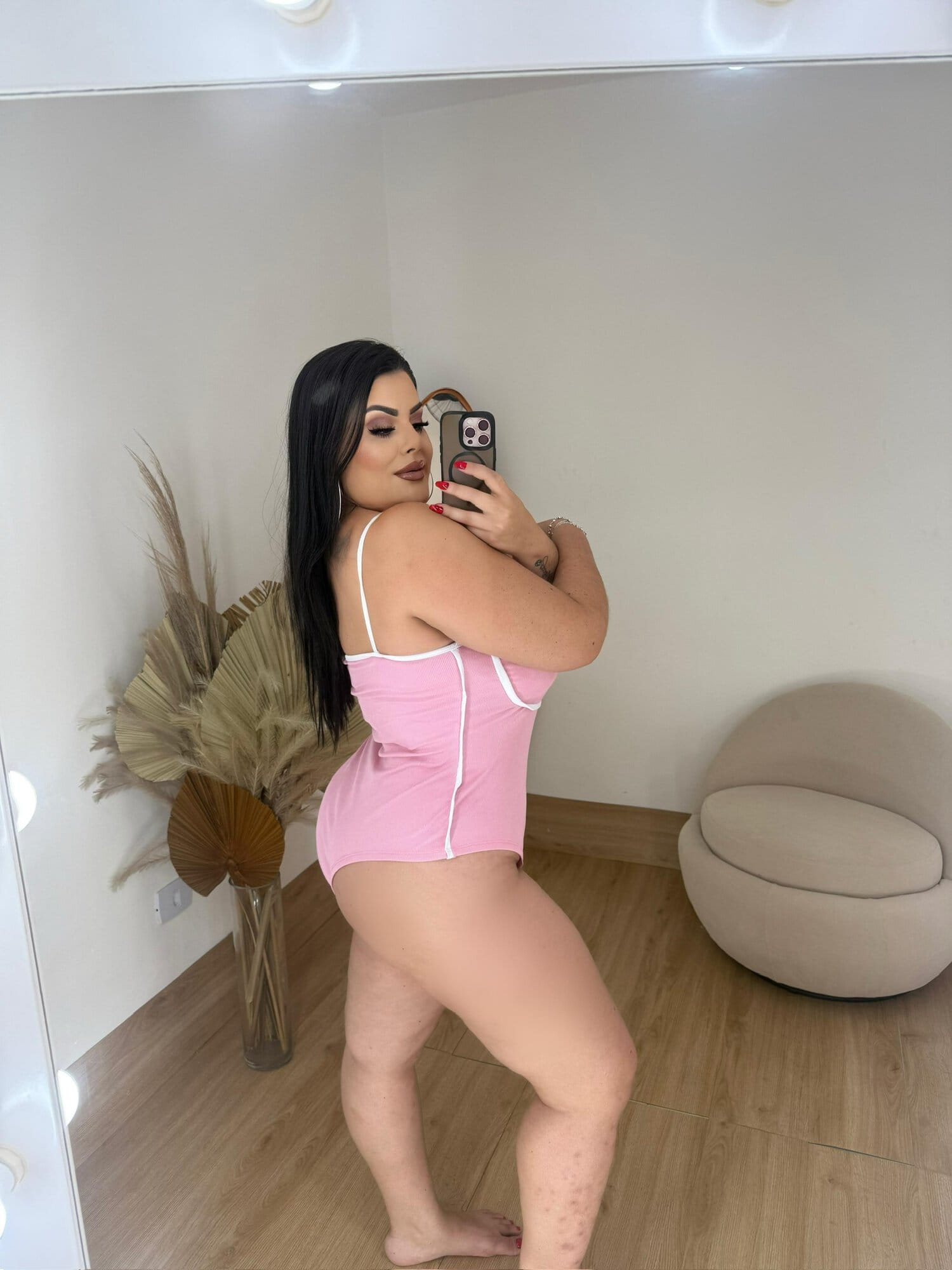 Body Isís Alça Fina Com Bojo Tecido Ribana Rosa Bebê Plus Size