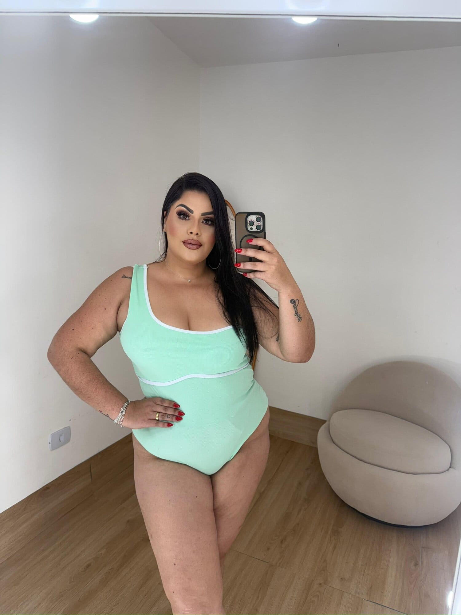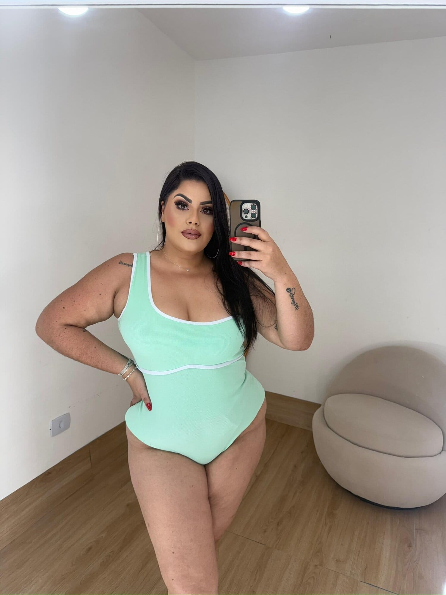 Body Lili Nula Manga Com Bojo com Viés Tecido Ribana Verde Água Plus Size