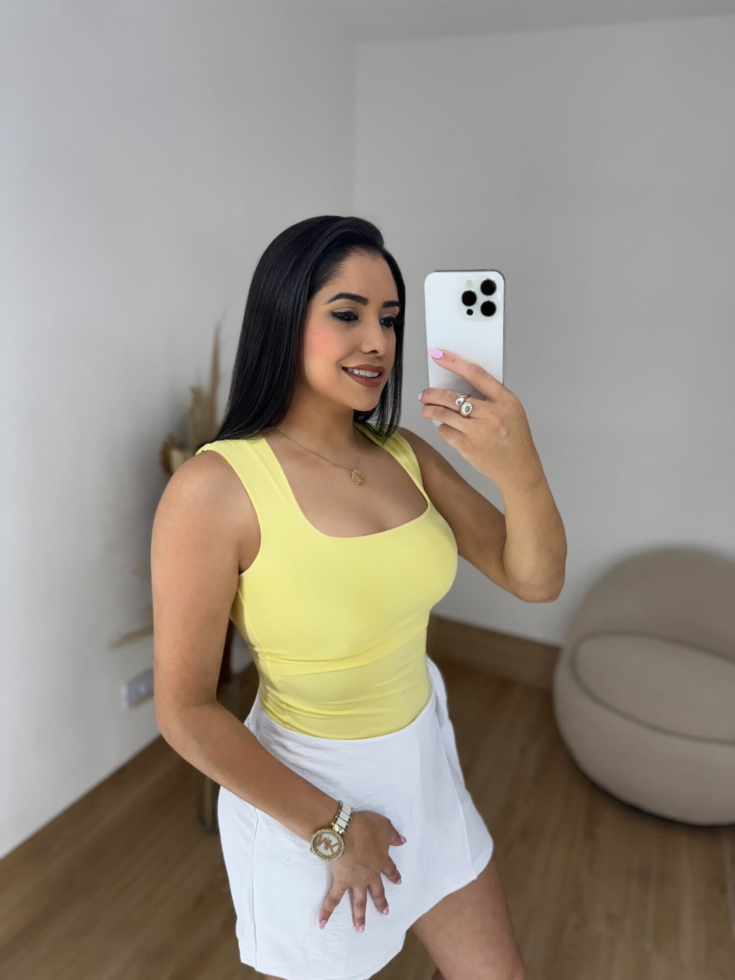body com recorte quadrado, estilo regata e em tecido fluity. Esse tipo de peça é ótimo para um look elegante e confortável, já que o fluity é um tecido leve, macio e com um caimento bonito no corpo.