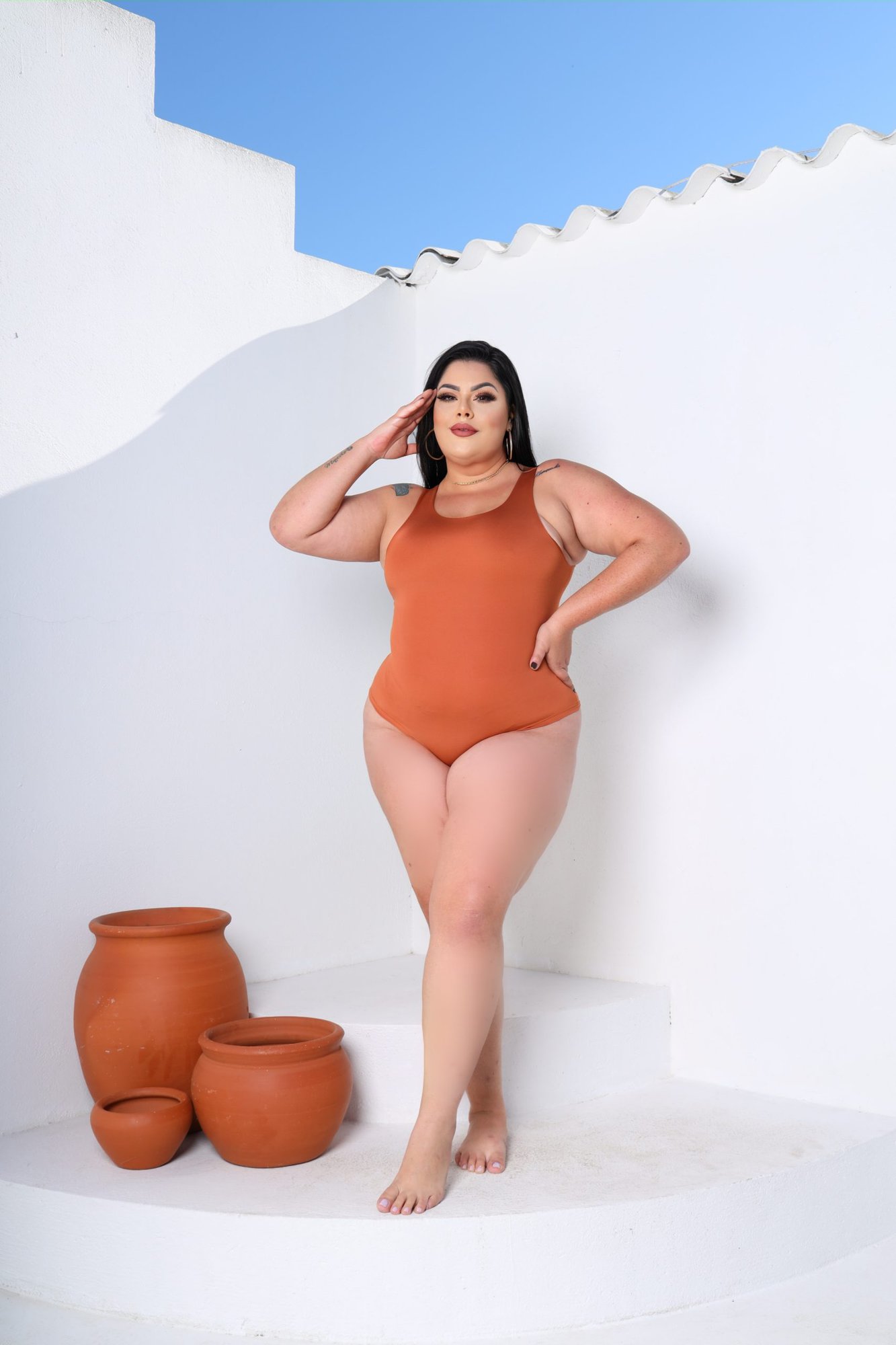 Body Zarah fluity Gola Redonda Caramelo Plus Size