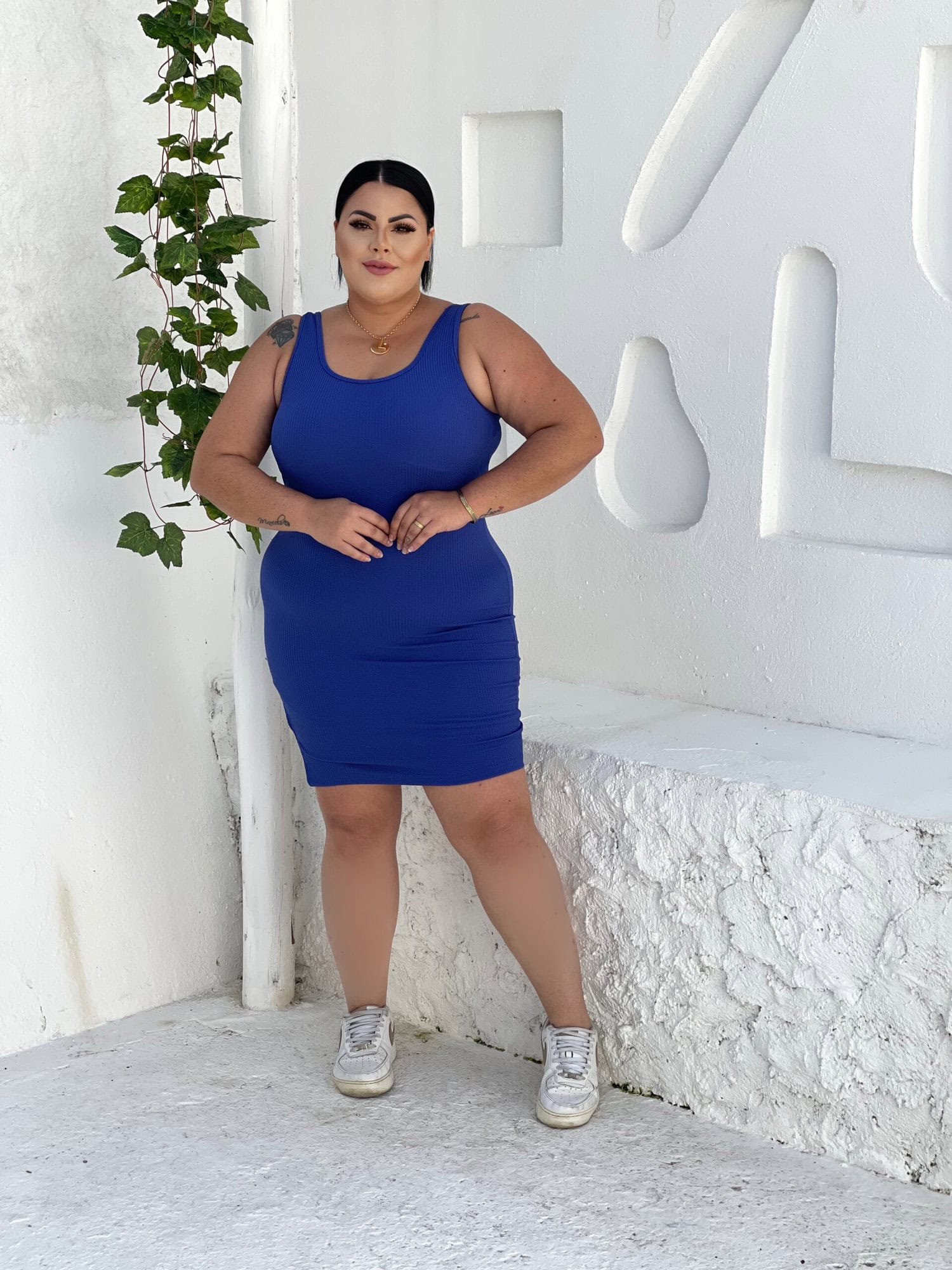 Vestido Anarruga Simone Regata Azul Royal Plus Size