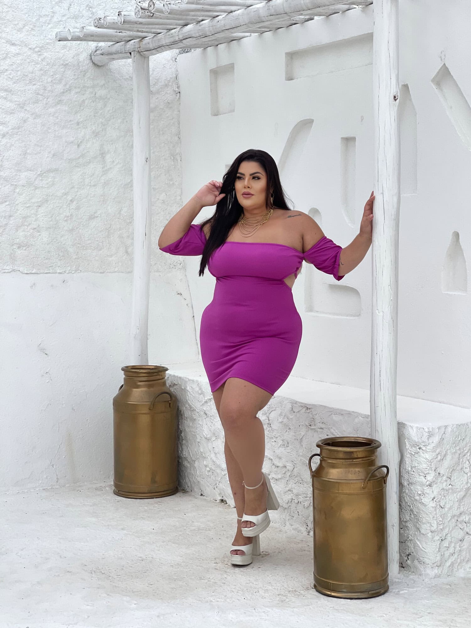 Vestido Joyce Ciganinha Anarruga Fúscia Plus Size
